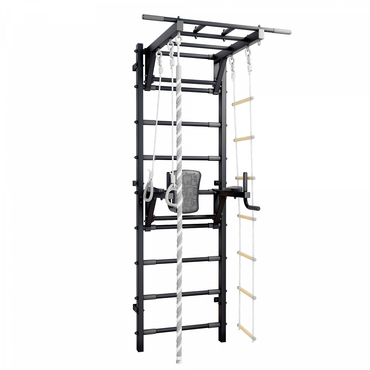 Брусья прошли испытания нагрузкой в 240 кг, фиксируются на любую высоту стенки, поэтому тренажер подходит для занятий подростков и взрослых разного роста и веса.