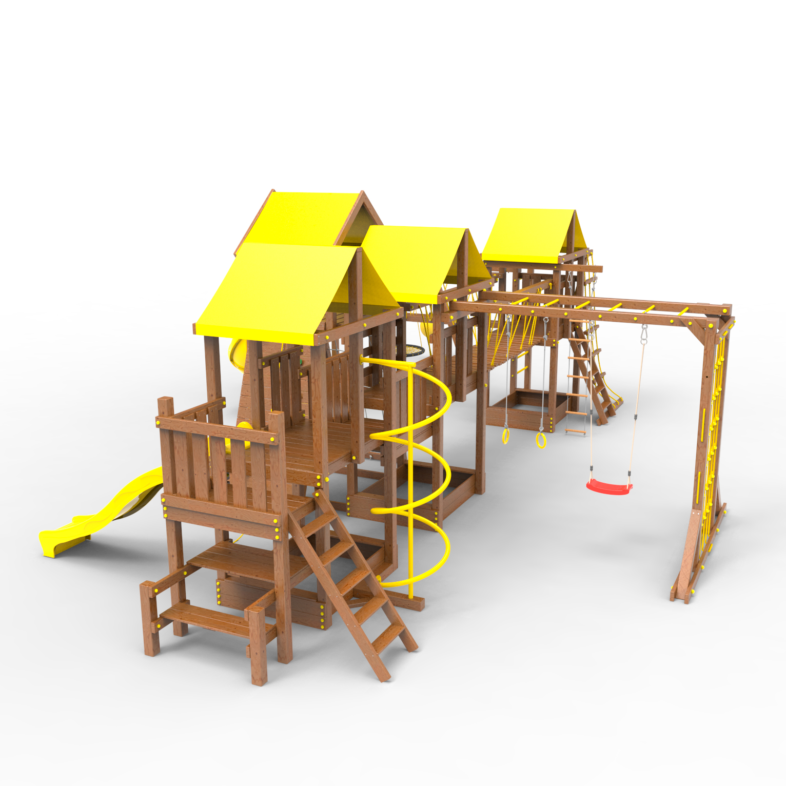 | Комплектация | Высокий домик|Два домика|Песочница|Лестница|Шторм-трап|Скалодром|Шведская стенка|Рукоход|Турник|Руфер|Балкон|Столик с лавочками|Баскетбольная корзина|Мостик|Подвесной мост|Горка|Винтовая труба|Спираль|Волна|Пожарный шест|Сеть для лазания|Качели|ЗигЗаг|Переправа |